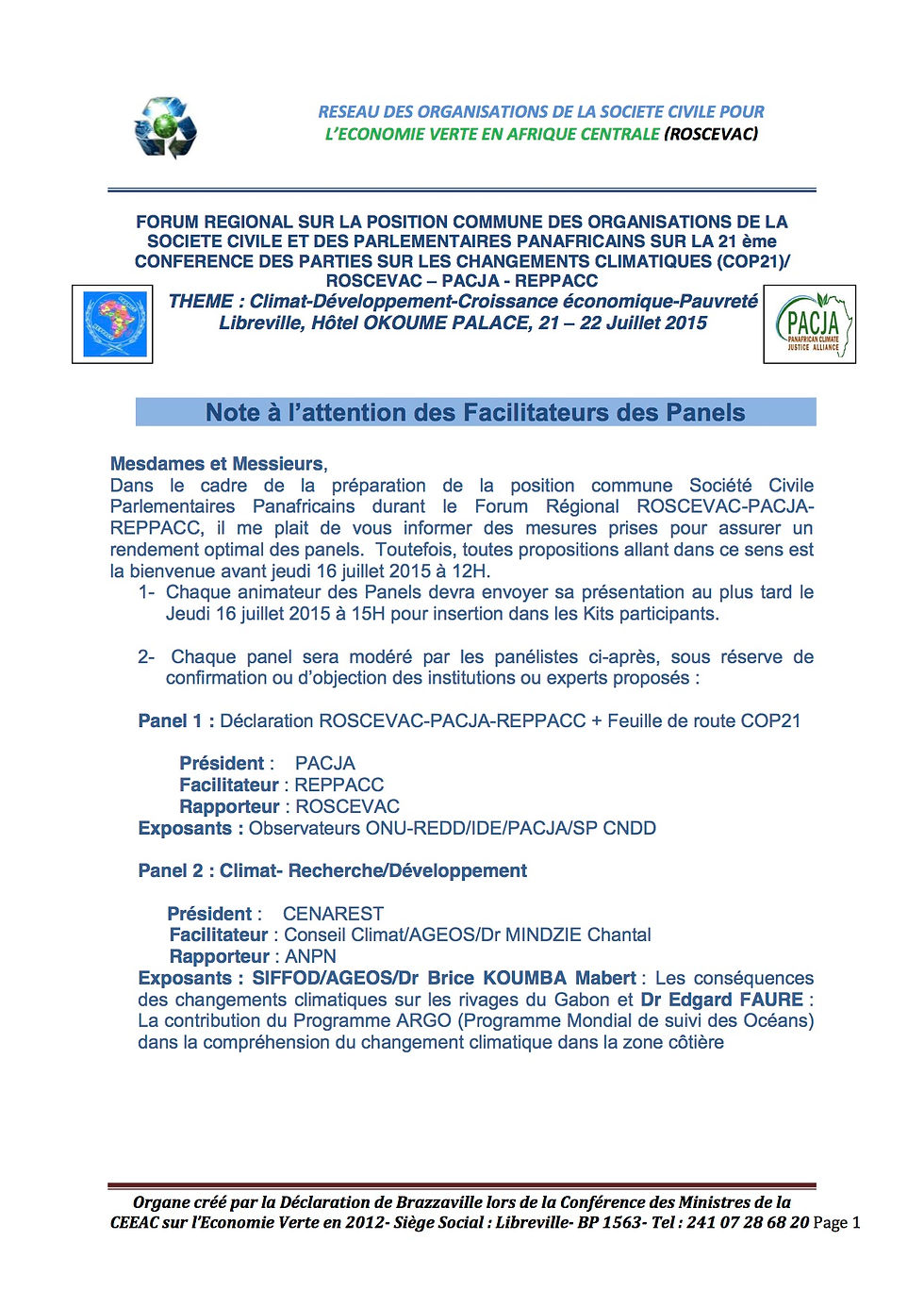 Déclaration de Libreville sur la position commune société Civile et parlementaires Panafricains pour